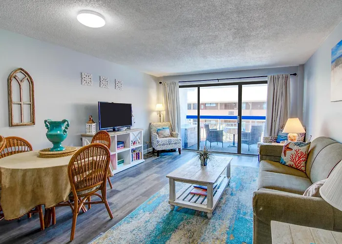 Situated merely a 5-minute walk from Myrtle Beach SkyWheel, Oceanview Condo And Resort Amenities Myrtle Beach villa entices guests with views of the sea.